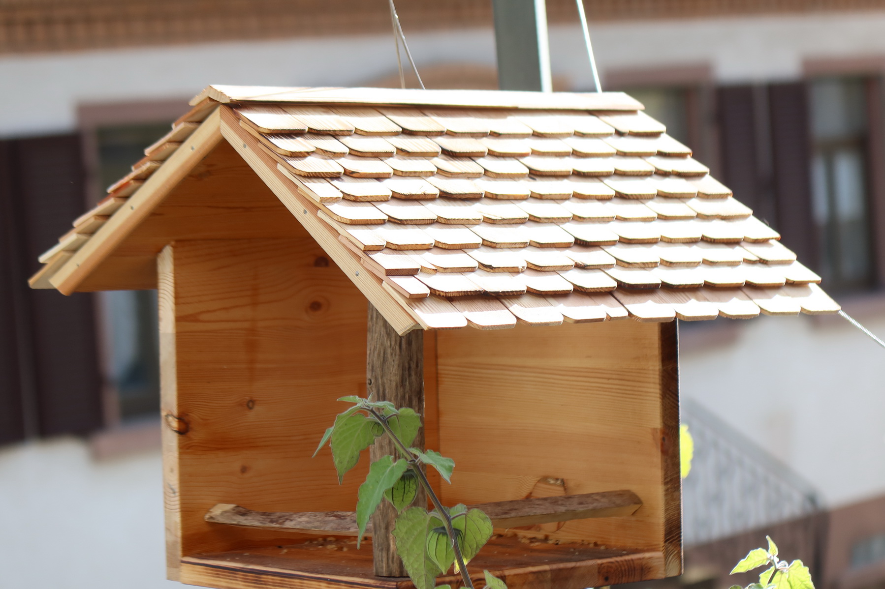 Das hochwertige Vogelhaus – nach Schwarzwäler Art mit Schindeldach, beflammten Aussenflächen, für draussen geeignet durch Verwendung von wasserfestem Leim, vorbereitet fürs aufhängen oder aufstellen. Durch die 2 offenen Seiten ideal um die Vögel auch anschauen zu können und sich Ihrer zu erfeuen.